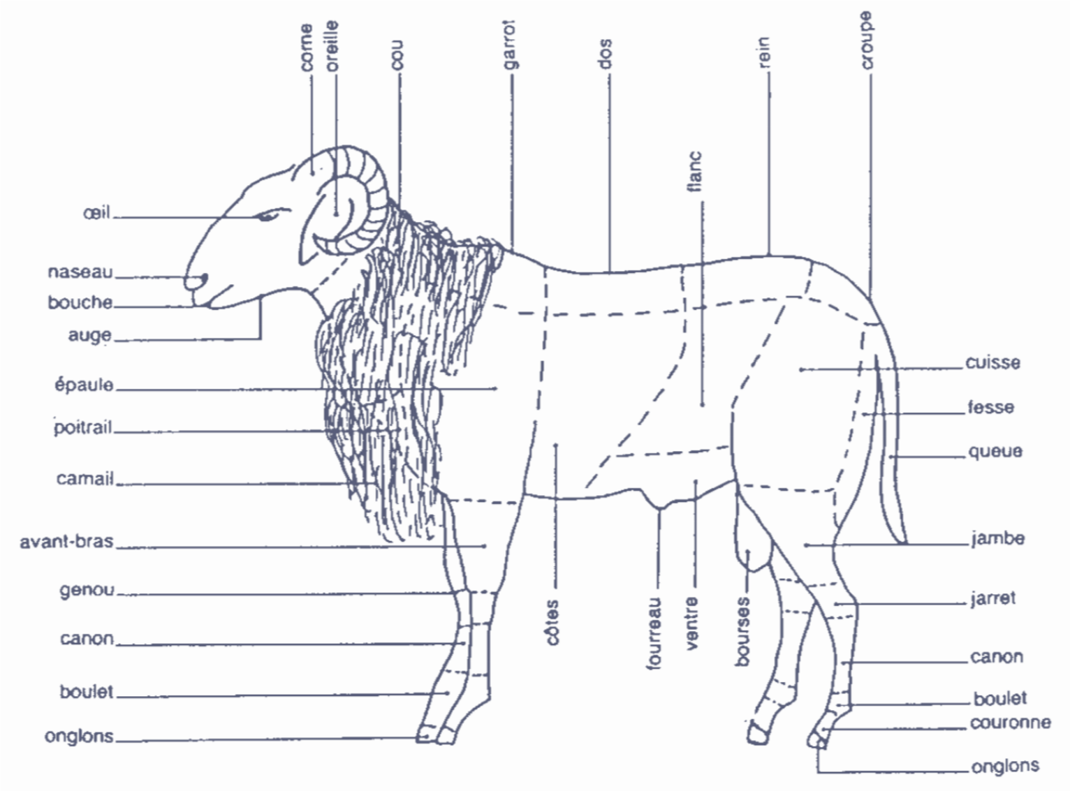 Figure 1: régions corporelles extérieures chez le mouton.
